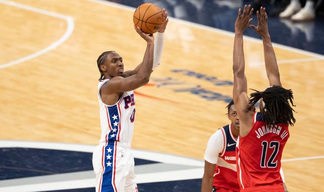 矛盾的是,76人進(jìn)攻效率位列聯(lián)盟第二(每百回合得124.9分),且以4勝0負保持不敗,同時(shí)在進(jìn)攻四要素的其他三項中均躋身前十:罰球率第六、失誤率第二、進(jìn)攻籃板率第六。